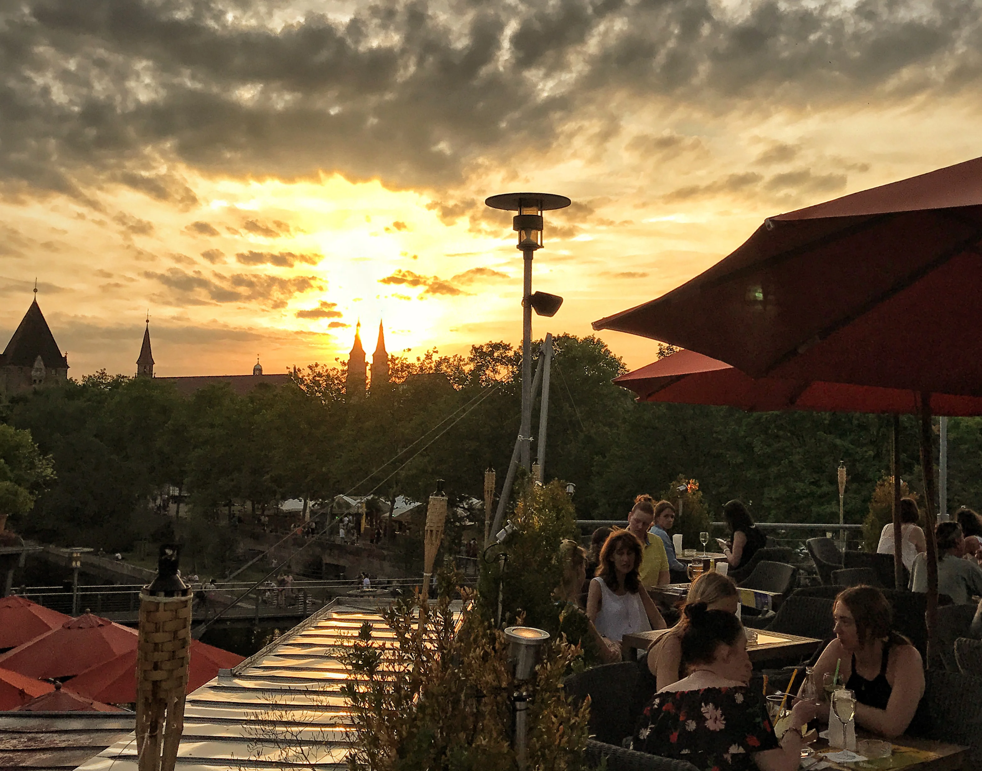 Kühle Drinks und leckerer Kaffee mit herrlichem Blick über die Pegnitz auf Altstadt und Kaiserburg. Unter der Woche gilt hier Selbstbedienung, aber an ausgewählten Terminen läuten wir auf dem Dach mit DJ das Wochenende ein oder feiern Events.