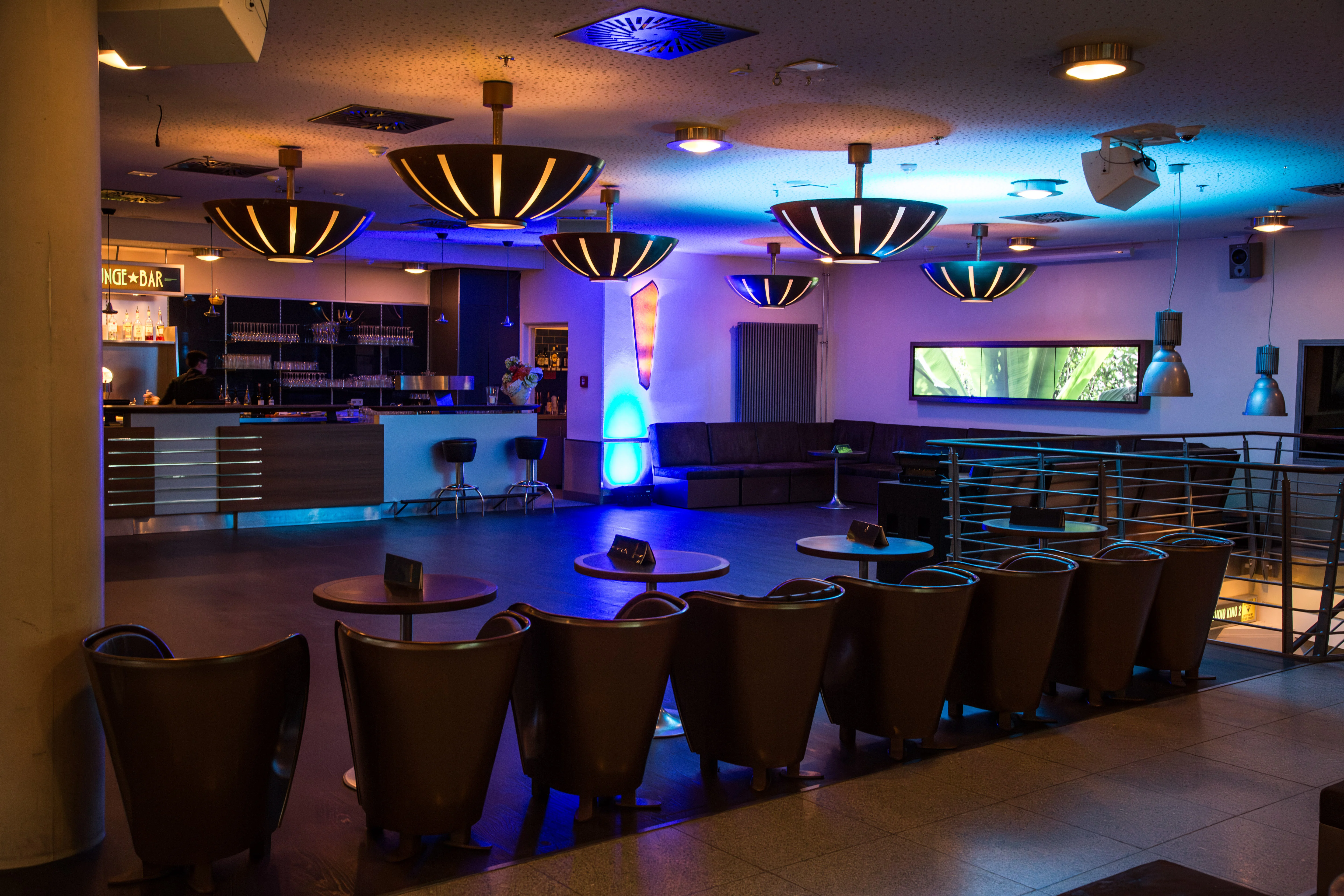 Die Lounge Bar ist unser Ort für Events - ob zu Filmen, Previews, Kulturveranstaltungen, Partys oder Firmenfeiern. Regelmäßig gibt es hier auch unser Filmquiz und alle Tango- und Salsa-Fans können hier das Tanzbein schwingen.